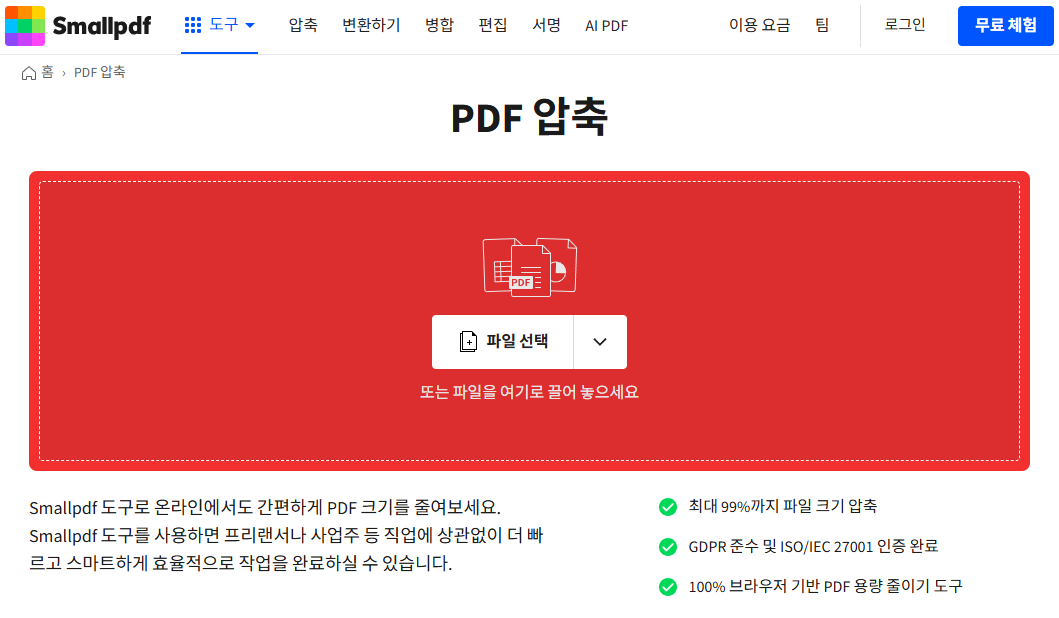 | Smallpdf | 빠르고 쉬움, 깔끔한 UI | 무료 이용 횟수 제한 |