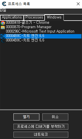 3. 프로세스 목록에서 치트를 사용할 게임 혹은 프로그램 선택