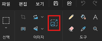 2. 그림판 상단의 '크기 조정' 버튼을 찾아 클릭합니다.
