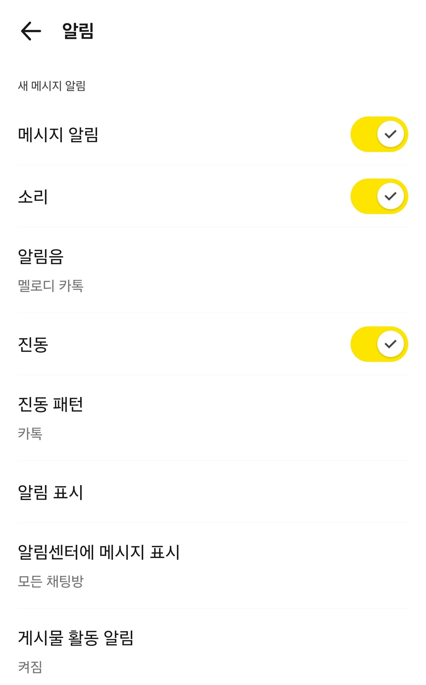 가끔은 카톡 자체 설정이 꺼져 있는 경우도 있어요.