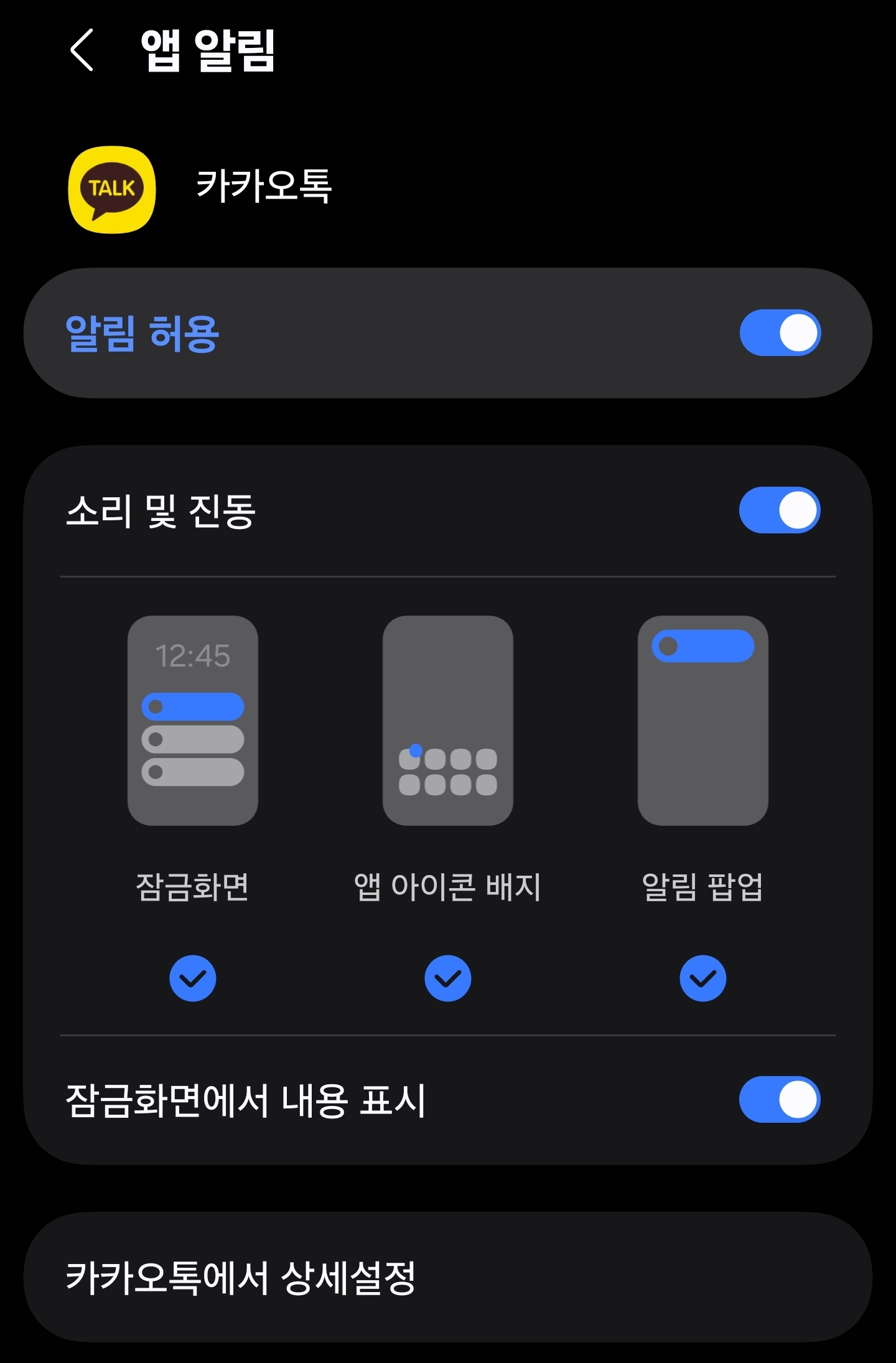 [설정 → 알림 → 앱 알림 → 카카오톡]